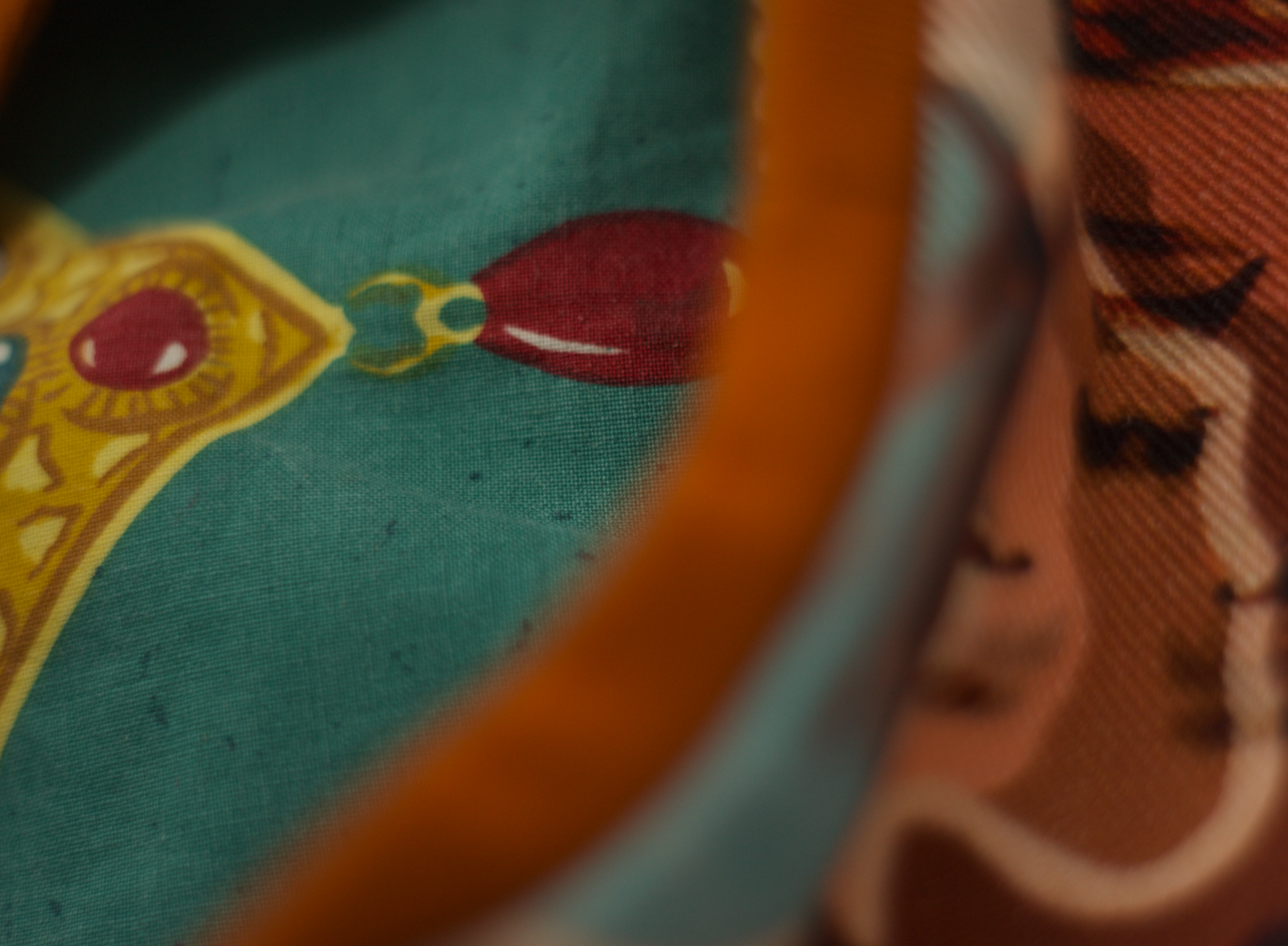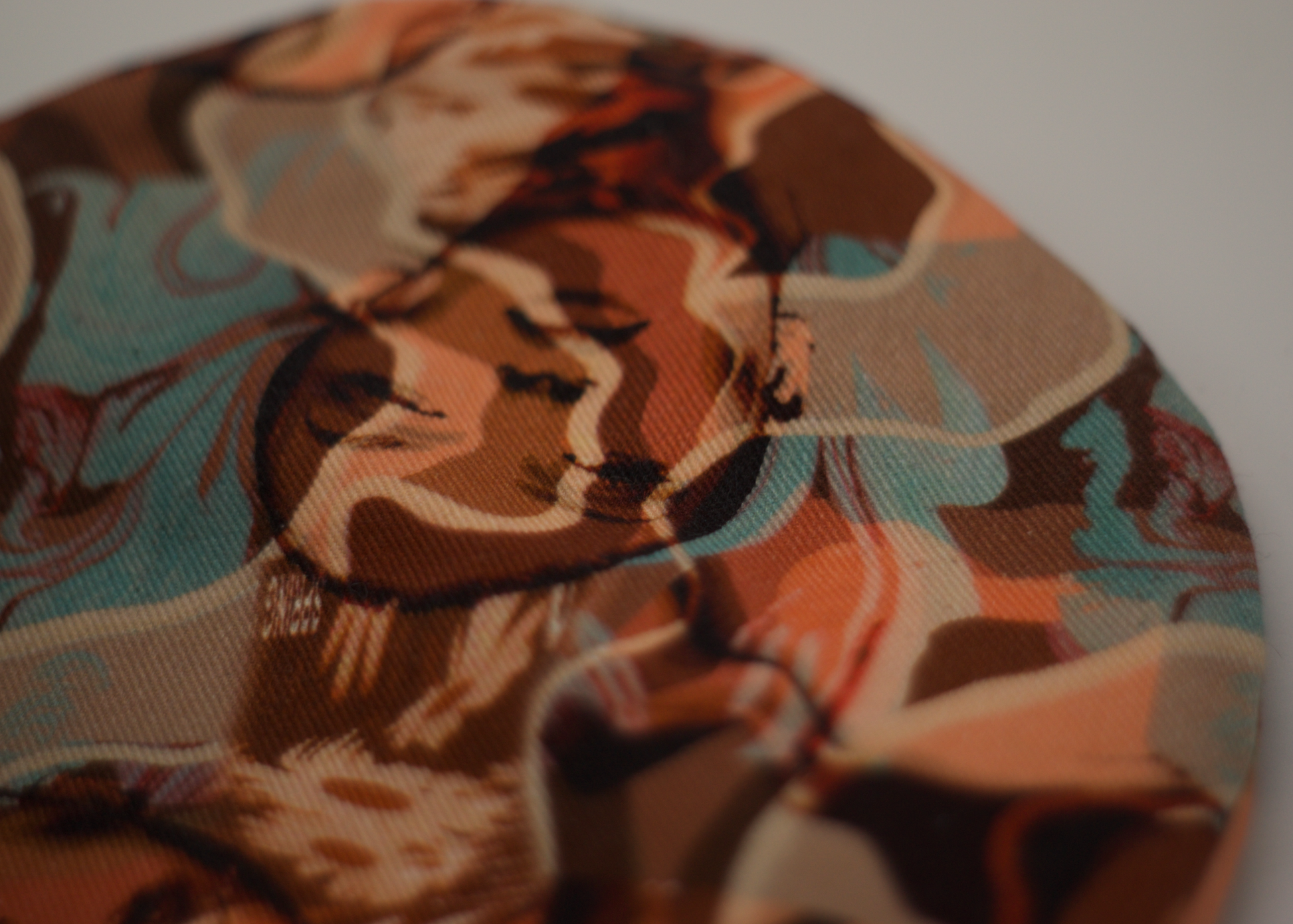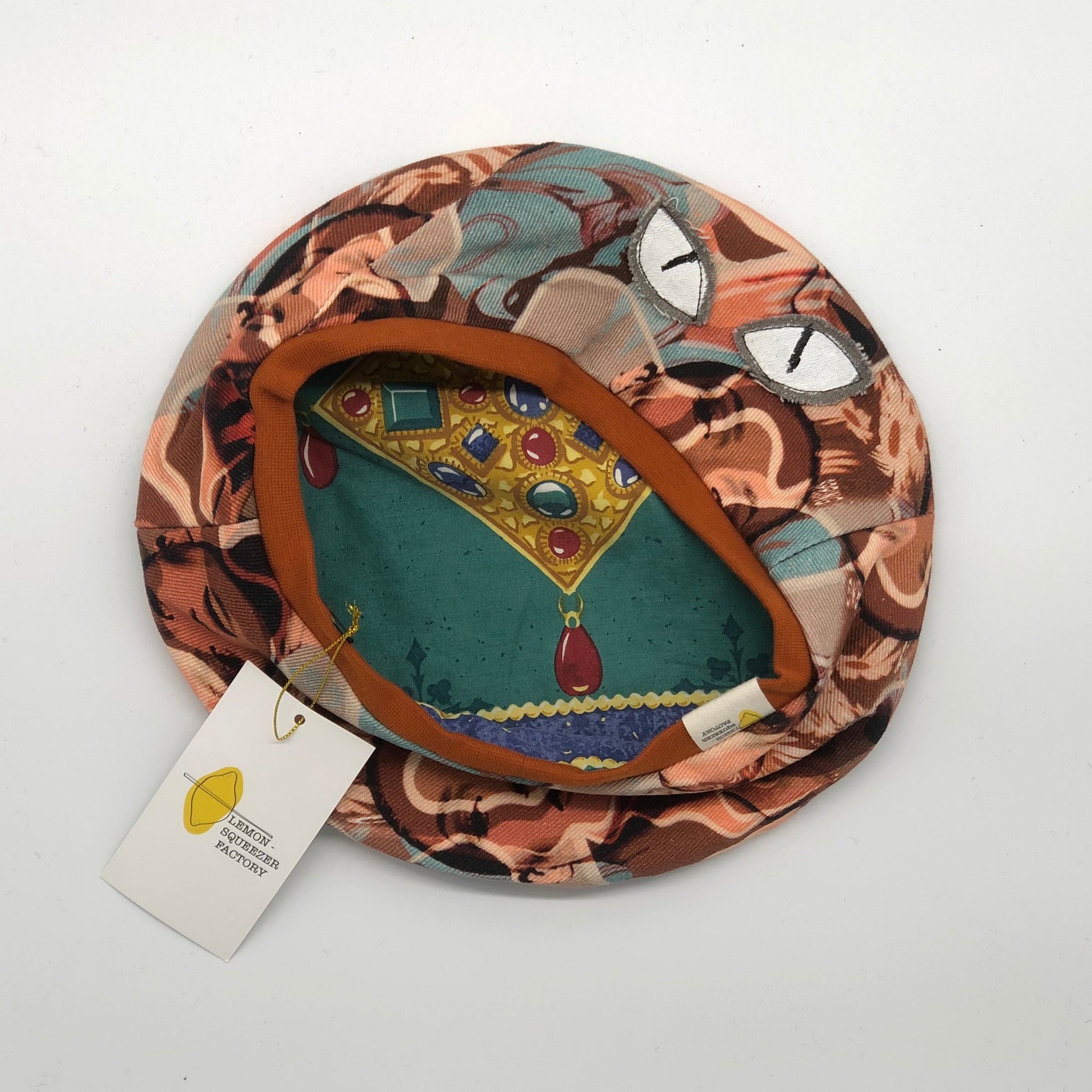 Denim orange, turquoise et rose à motifs visages. Yeux peints à la main.